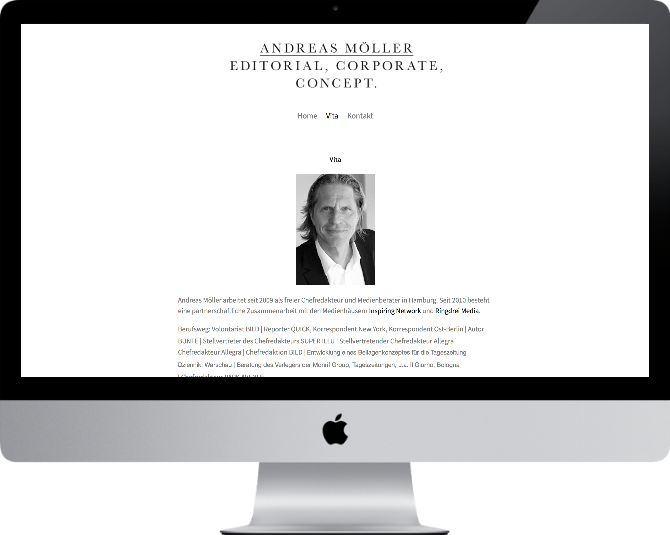 Für Andreas Möller, freier Chefredakteur und Medienberater, haben wir eine Website gestaltet und realisiert.
